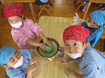 月・太陽組さんが摘んだよもぎを使って、よもぎ団子づくりをしました。