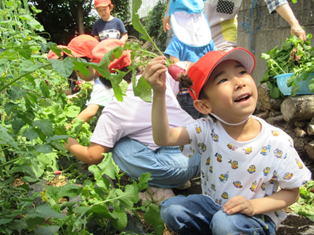 5月は2歳児から5歳児まで、畑の野菜を収穫してから調理保育を楽しみました。