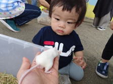 9月7日に、園庭を使って動物村が行われました。子ども達はお家から持参してくれたお野菜を、